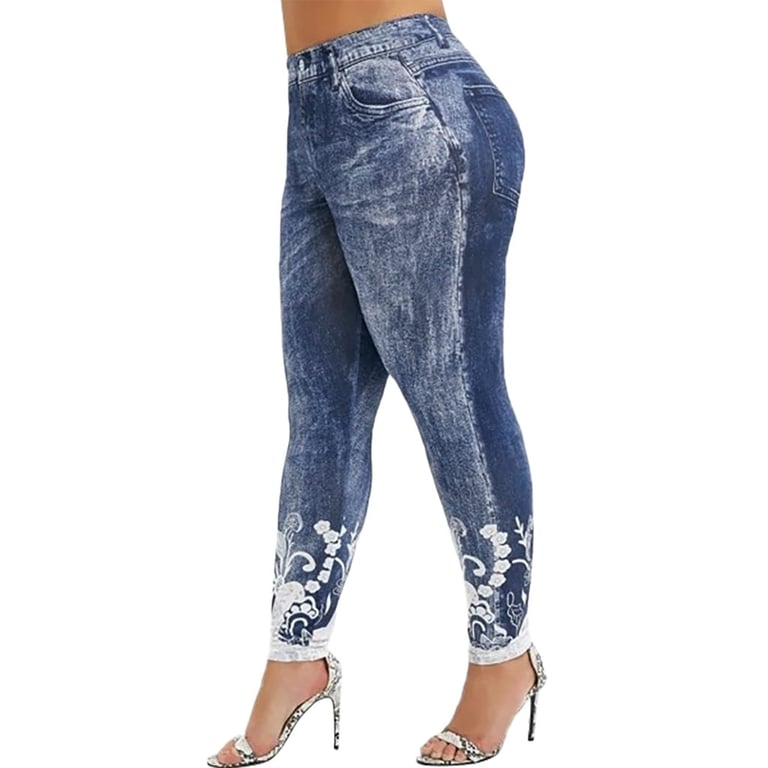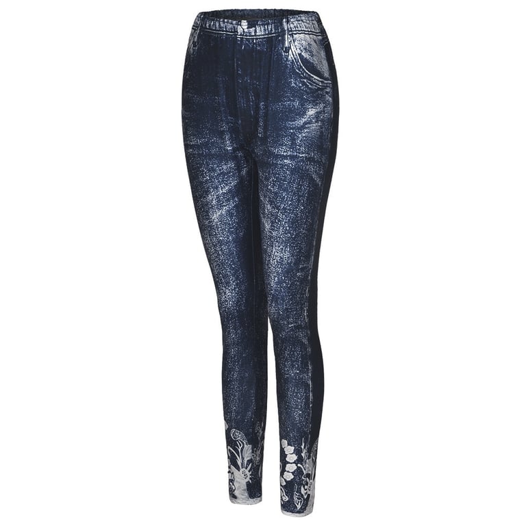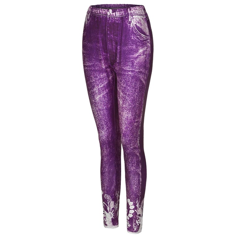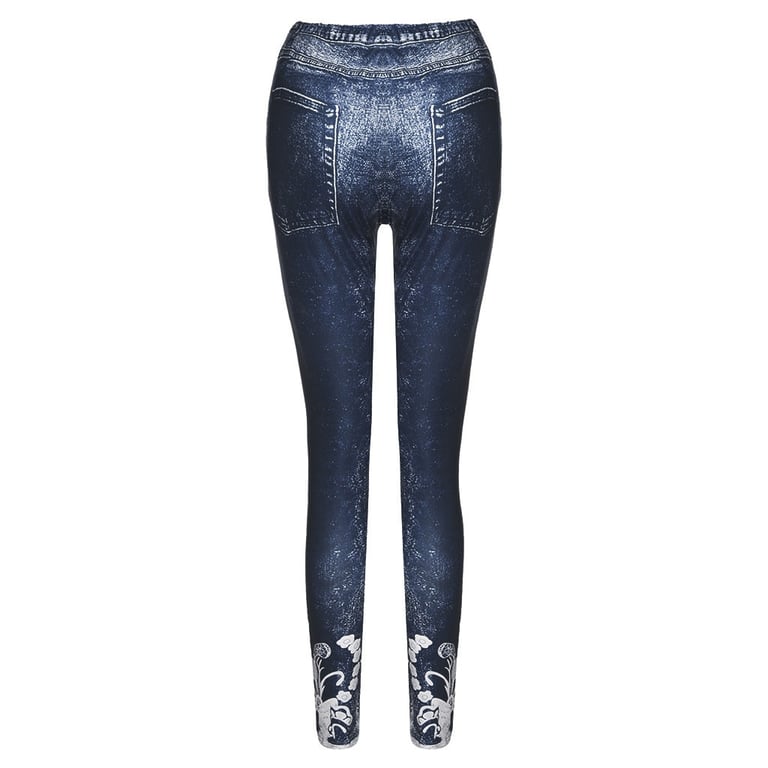 • Lunghezza della gamba fino alla caviglia, con stampa in decorazione pizzo, stampa di false tasche laterali e posteriori e bottone, comoda vita alta elastica.