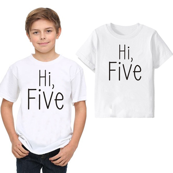 T-shirt bianco semplice per bambini con la scritta Hi, five