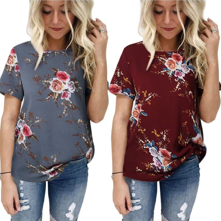 Maglietta floreale da donna con maniche corte