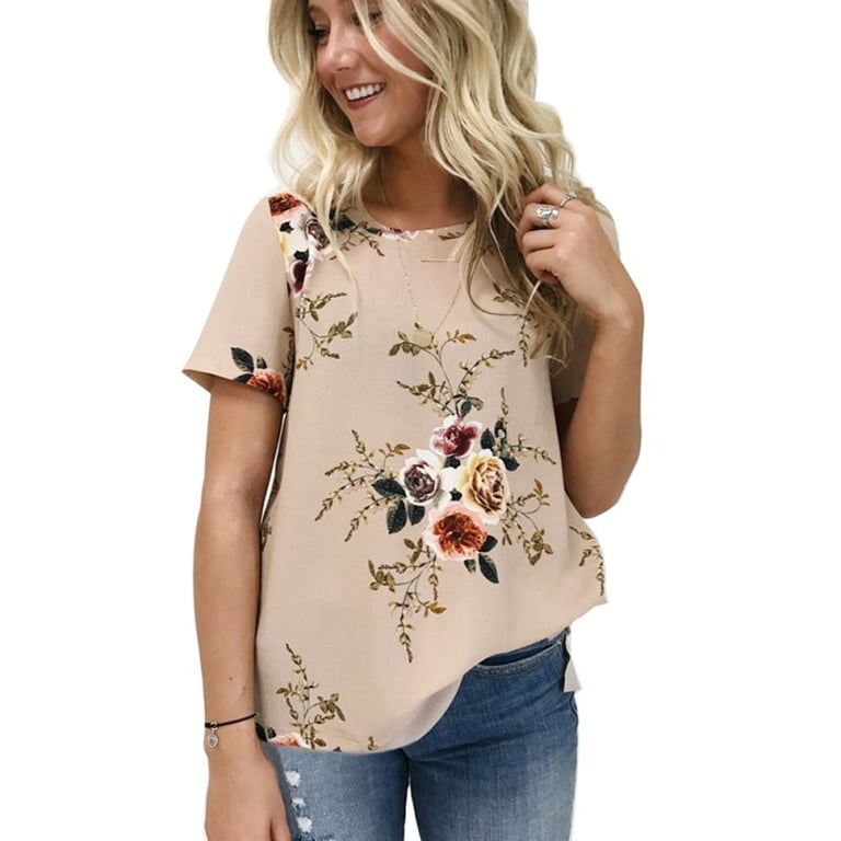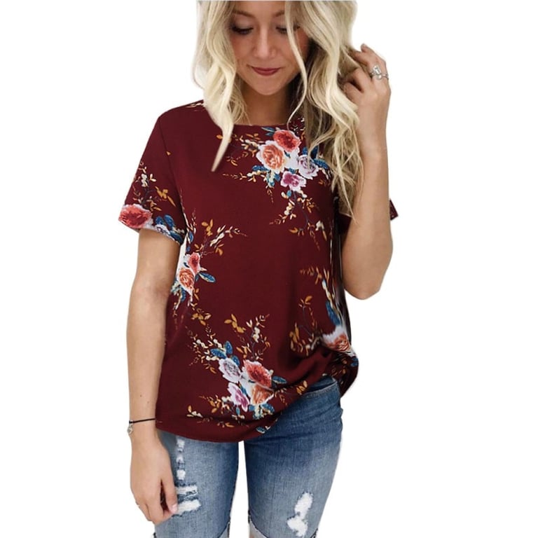 Maglietta da donna a maniche corte con stampa floreale