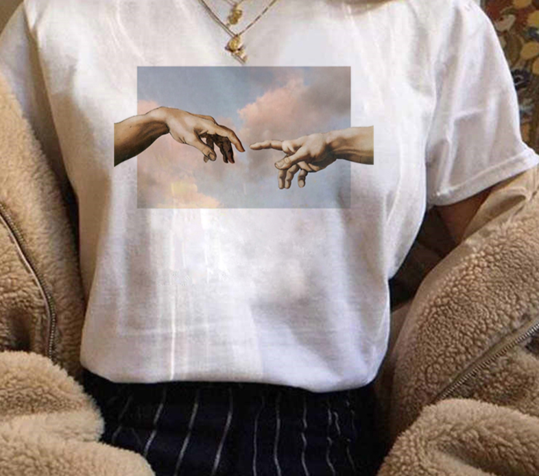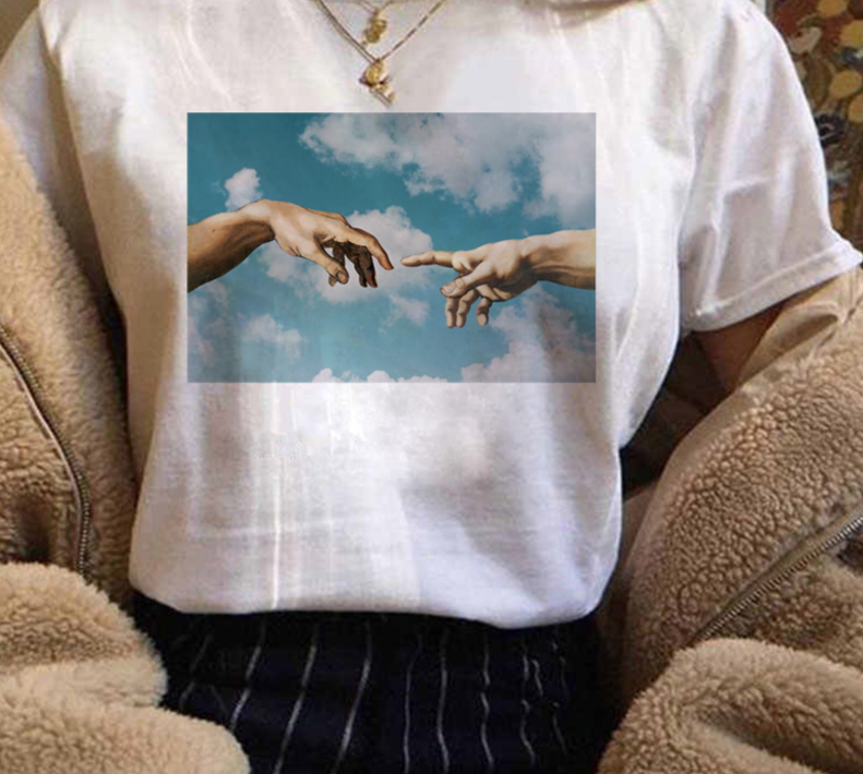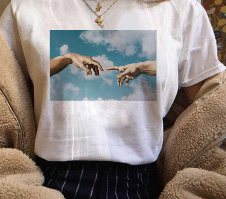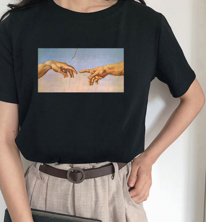 T-shirt da donna con stampa di pittura a olio artistica