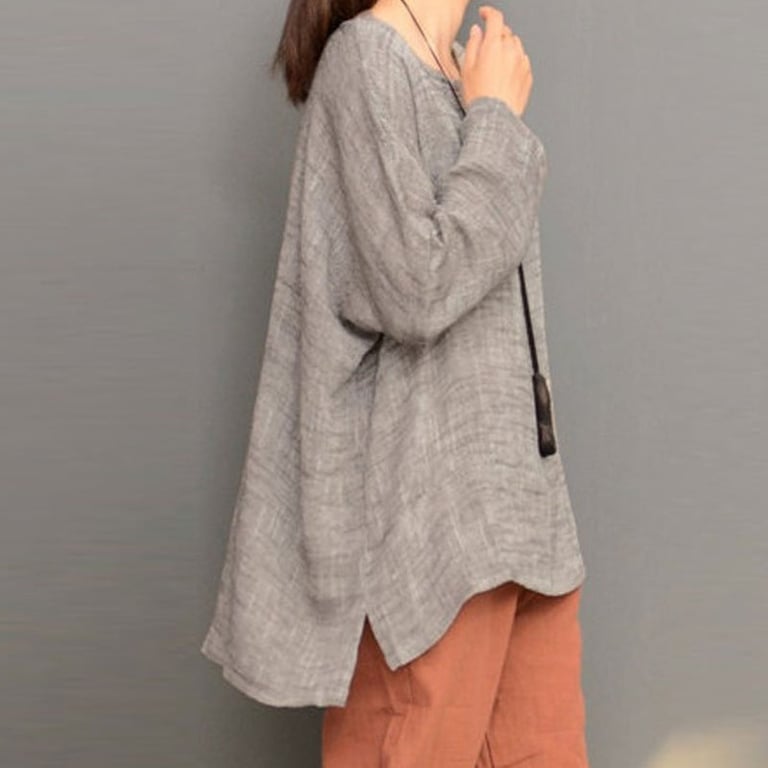 • T-shirt vintage da donna in tinta unita con scollatura rotonda. Ha cuciture laterali ed è realizzato in fibra di poliestere di alta qualità e cotone. Questi materiali aiutano a mantenere la forma a lungo e aumentano anche la sua elasticità.