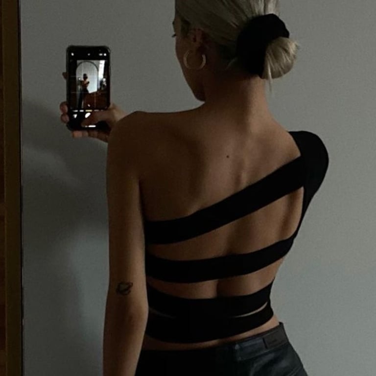 Maglietta sexy con schiena scoperta e scollatura diagonale Sarah