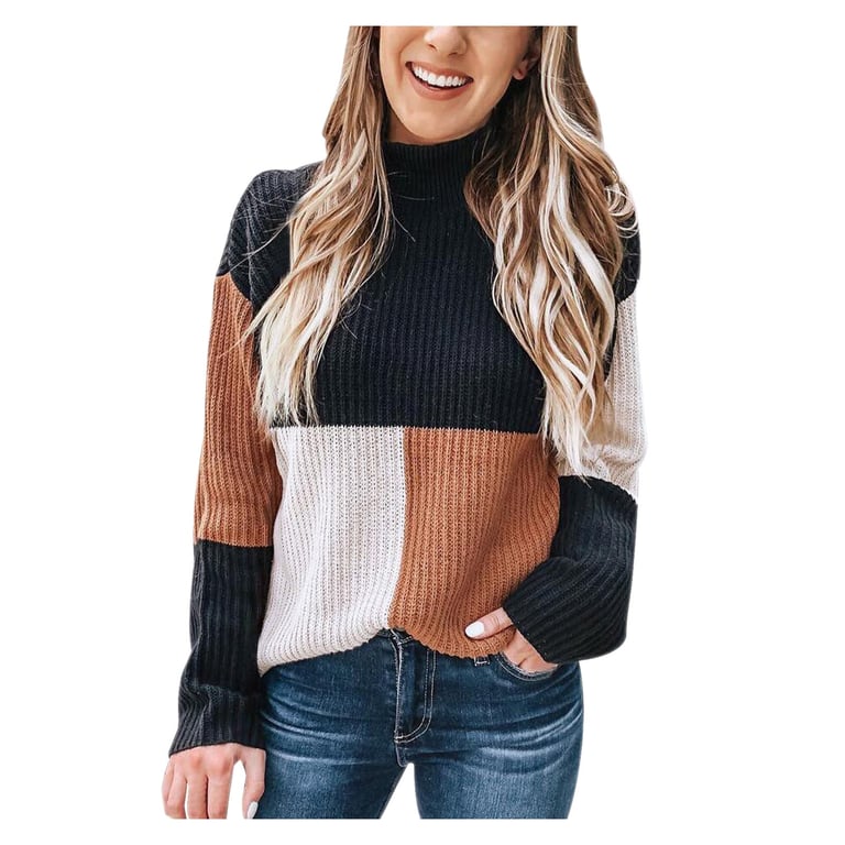 Maglione a quadri da donna con collo alto