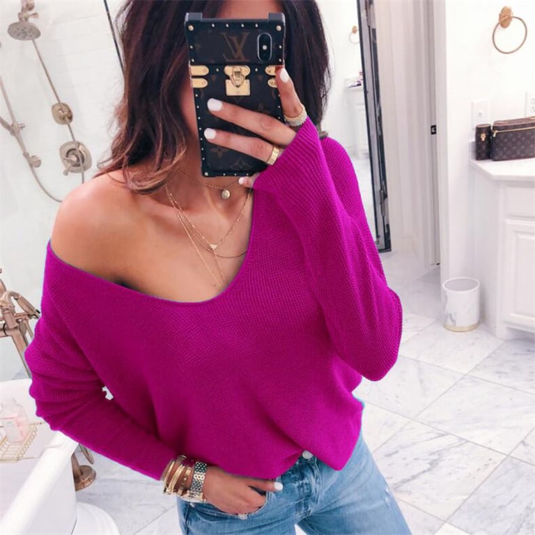 Maglione da donna con maniche lunghe e scollatura profonda con spalle cadenti. Taglio ampio e comodo. Disponibile in diverse varianti di colore.