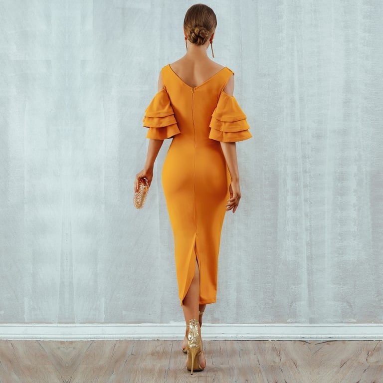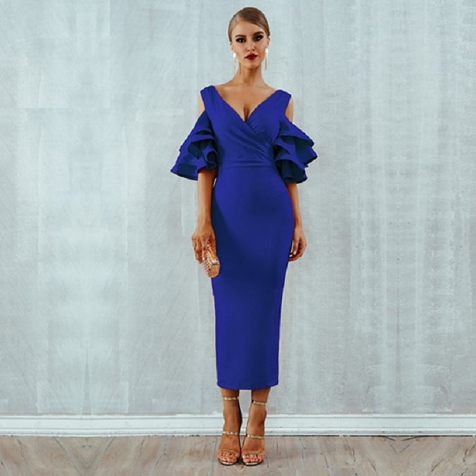 Incantevoli abiti da donna con incrocio nel décolleté e spacco sul retro.