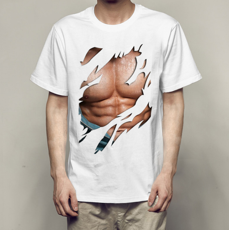 T-shirt bianco classico originale con addominali scolpiti