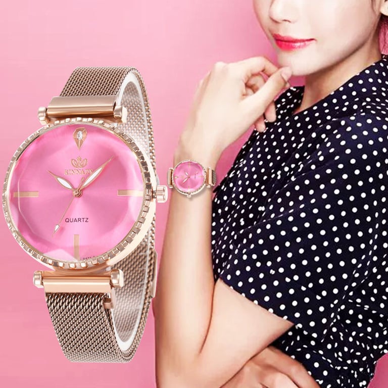 Orologio da donna con cinturino in metallo regolabile. Quadrante senza numeri in una cornice metallica.