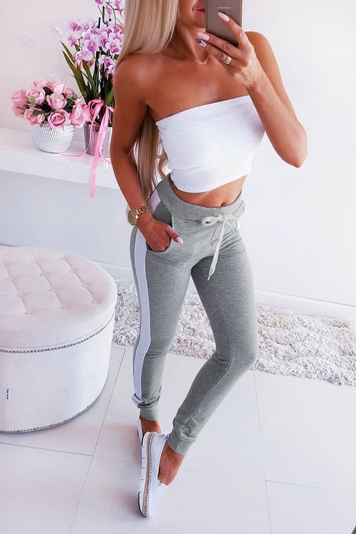 Pantaloni sportivi da donna in stile skinny con striscia colorata laterale
