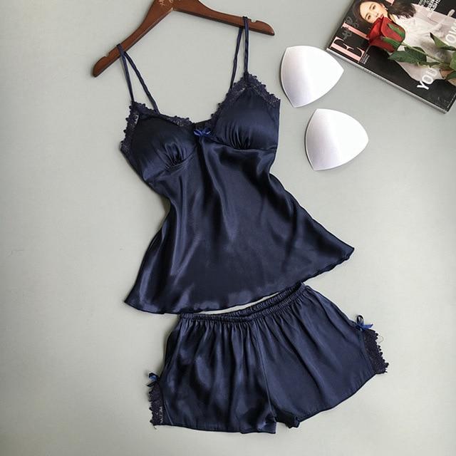 Pigiama in seta satinata. Canotta e pantaloni corti.