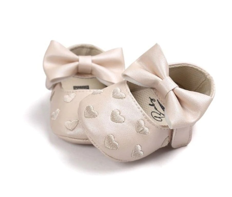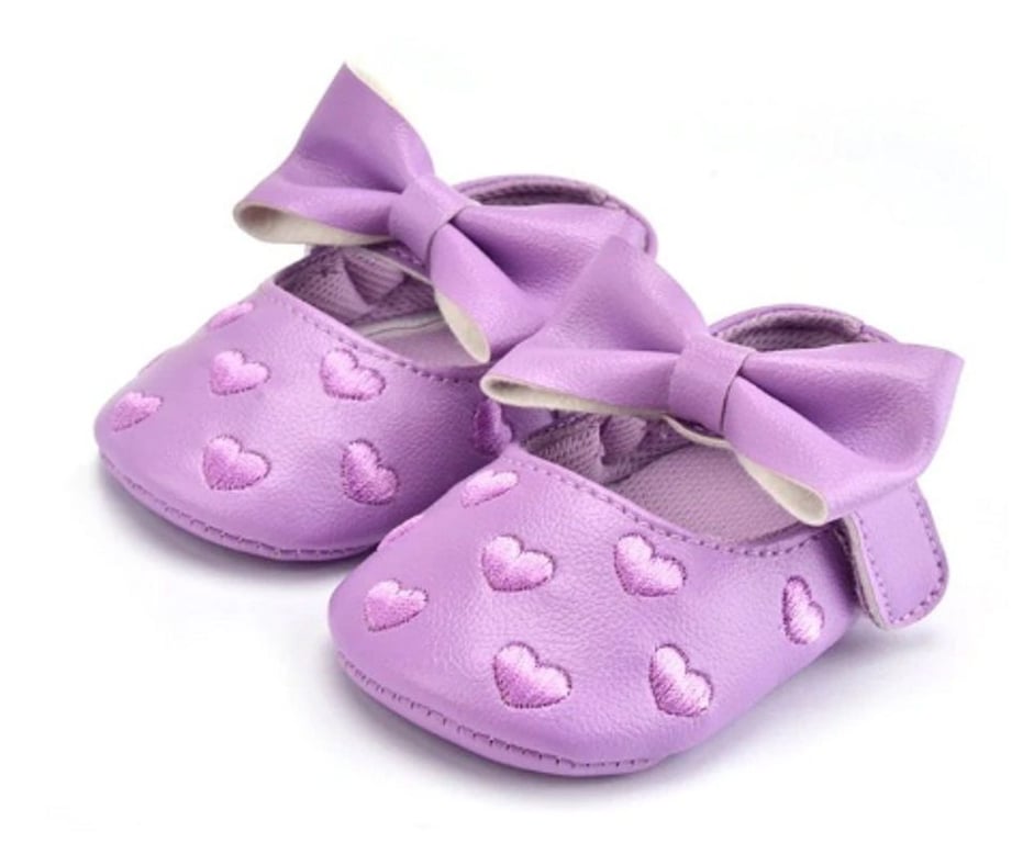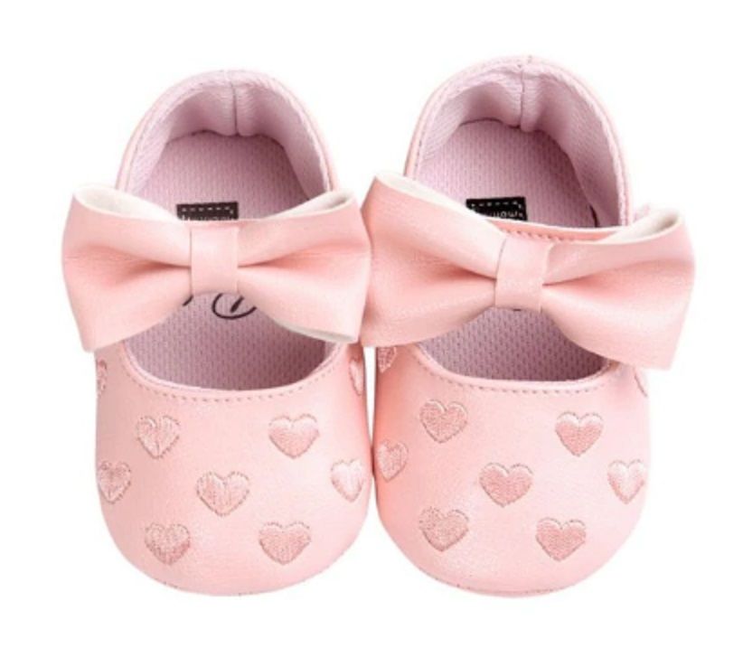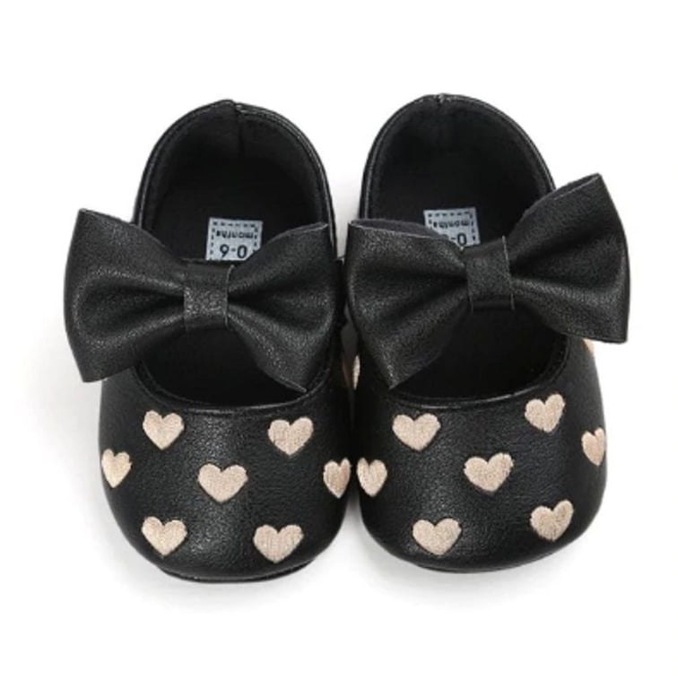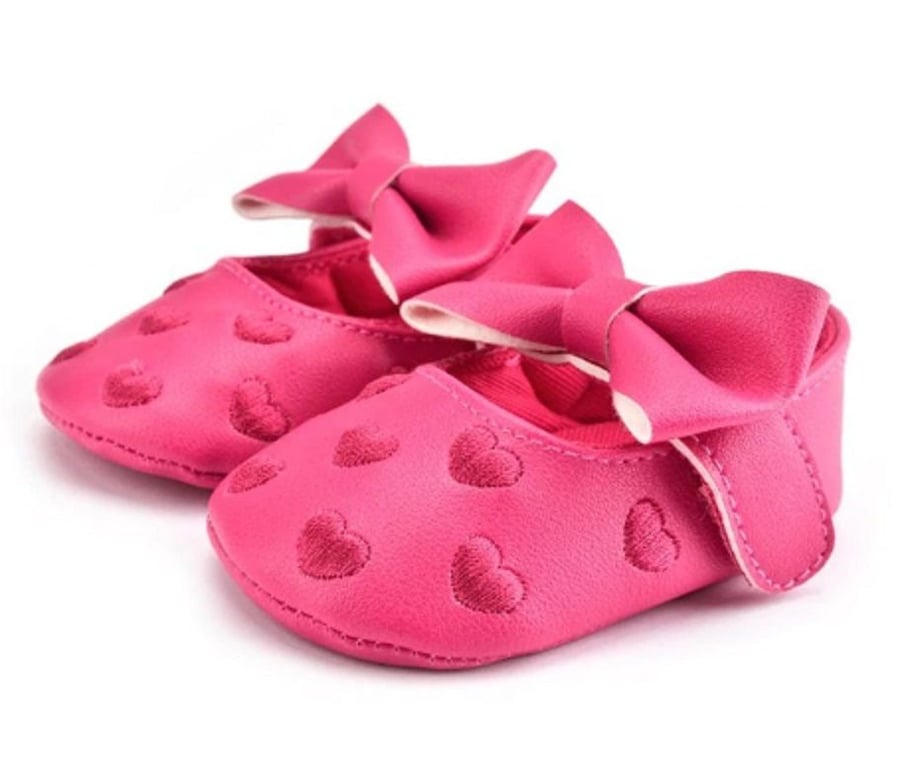 Le scarpine in pelle decorate con cuoricini sono perfette per le più piccole delle principesse.