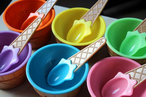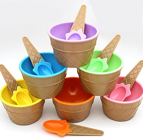 Set carino per bambini per il gelato - ciotola + cucchiaino - 6 colori