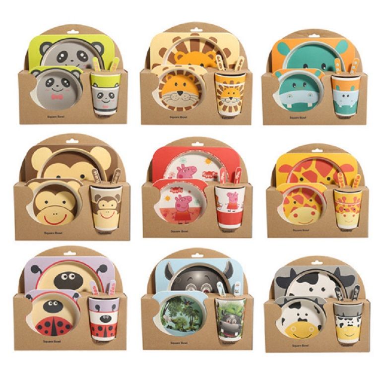 Questo set da tavola per bambini è realizzato in fibra di bambù e consiste di 5 pezzi.