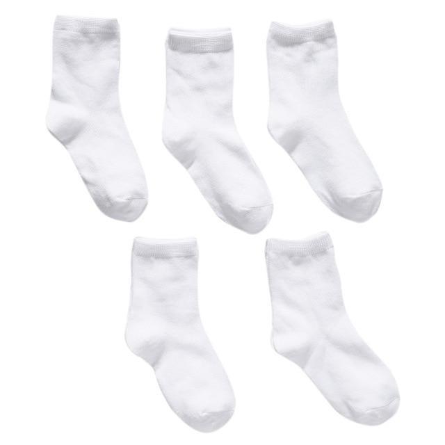 Set di alta qualità di 5 paia di calzini bianchi traspiranti per bambini. Adatti per ragazzi e ragazze dai 2 ai 15 anni.