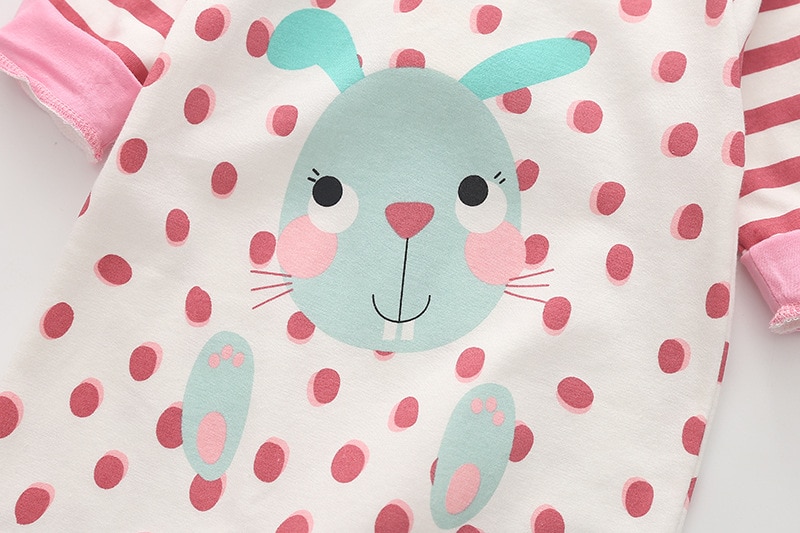 Set di pigiama carino / tuta con coniglietto e maniche lunghe + cappellino