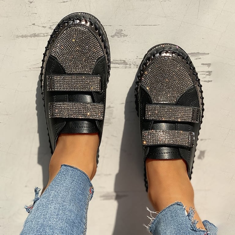 Scarpe da ginnastica scintillanti da donna con velcro e strass