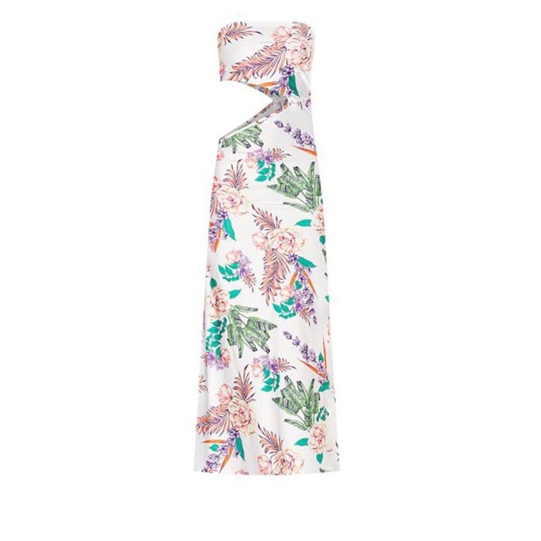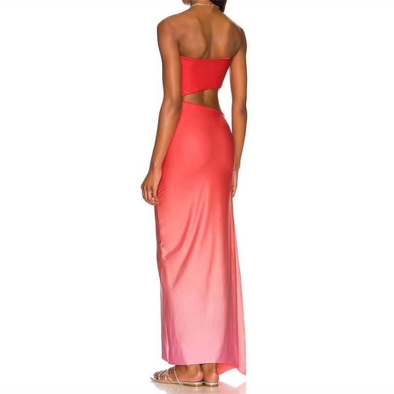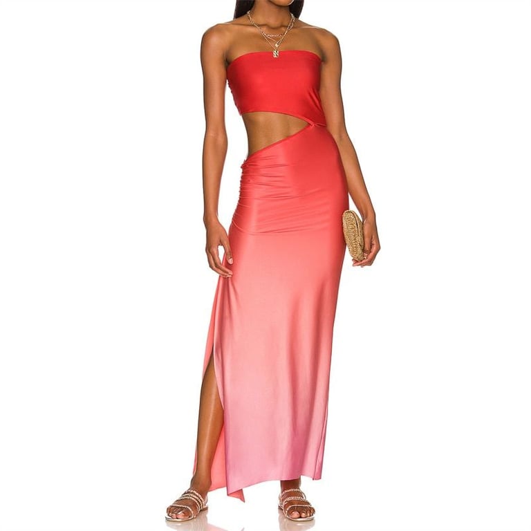 Abito moderno senza spalline con un'apertura sul lato.