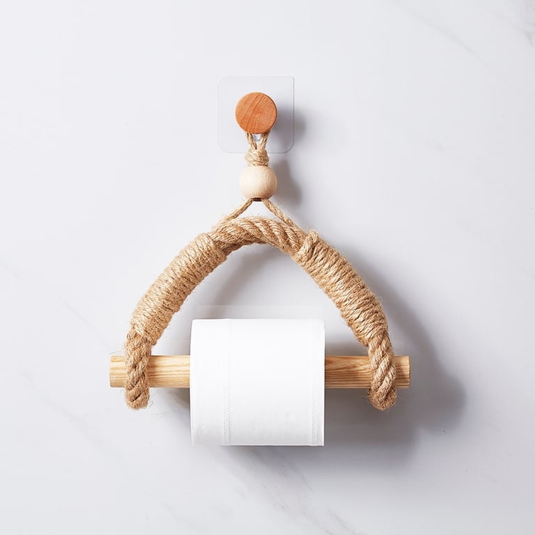 Un bellissimo supporto che si adatta a ogni casa moderna. È realizzato in legno di alta qualità e corda, e ha un aspetto davvero naturale e organico. Oltre alla carta igienica, può essere utilizzato anche per altre cose, come asciugamani, strofinacci, o come fermacurtain.