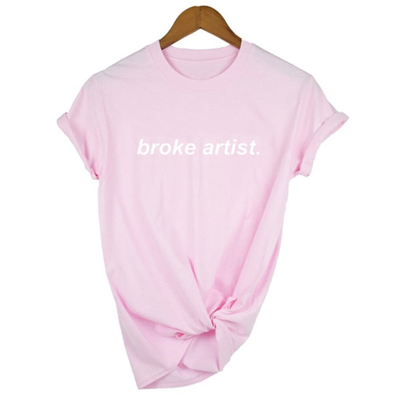 T-shirt semplice e stiloso con stampa ‘broke artist.’