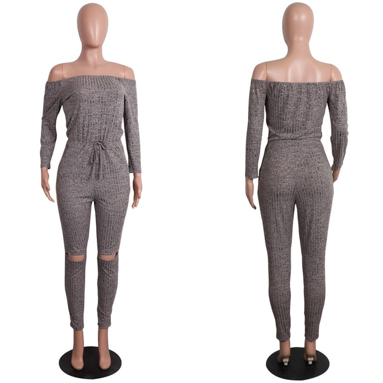 Elegante tuta in morbida lana calda, con maniche lunghe e senza spalline.