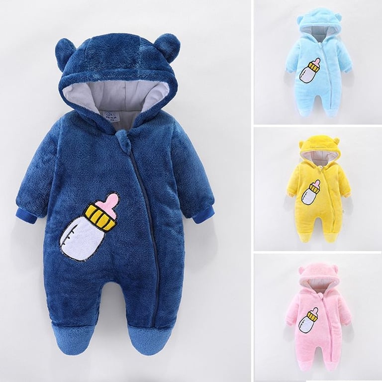 Salopette in peluche per bambini dallo stile alla moda con motivo della bottiglietta.